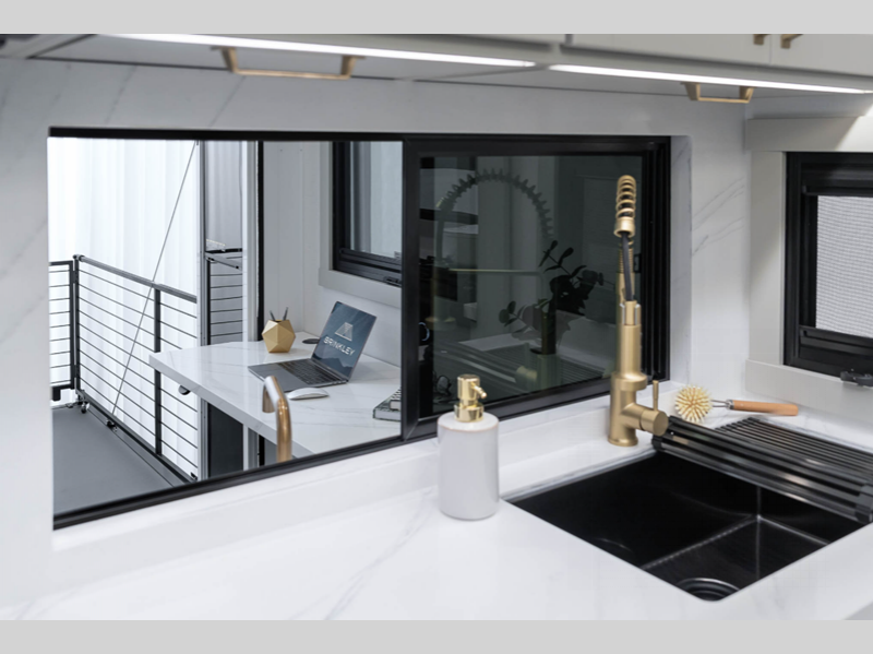 - Pass-Through Kitchen Window w/Removable Panes & Storage Rack (3250 Only)