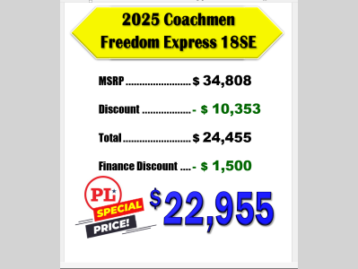 Pleasureland RV is not responsible for any misprints, typos, or errors found in our website pages. Any price listed excludes sales tax, registration tags, and delivery fees. Manufacturer pictures, specifications, and features may be used in place of actual units on our lot. Please contact us @800-862-8603 for availability as our inventory changes rapidly. All calculated payments are an estimate only and do not constitute a commitment that financing or a specific interest rate or term is available.