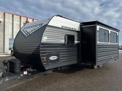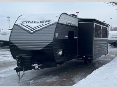 Join the CrossRoads family with a Zinger Lite travel trailer! You'll enjoy an abundance of standard features you would usually find with higher priced travel trailers. Each model features a Super Flex Alpha Roof and front diamond plate for added strength and durability. There is also an electric awning outdoors, along with pass-through storage, rear ladder prep, and a tankless on-demand water heater for added convenience. The interior features pleated shades/mini blinds/fabric window treatments, a 12V refrigerator, comfortable seating and seating spaces, plus plenty of storage for your personal belongings and camp gear!