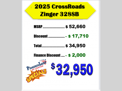 Pleasureland RV is not responsible for any misprints, typos, or errors found in our website pages. Any price listed excludes sales tax, registration tags, and delivery fees. Manufacturer pictures, specifications, and features may be used in place of actual units on our lot. Please contact us @800-862-8603 for availability as our inventory changes rapidly. All calculated payments are an estimate only and do not constitute a commitment that financing or a specific interest rate or term is available.