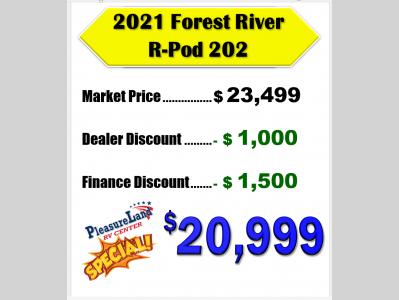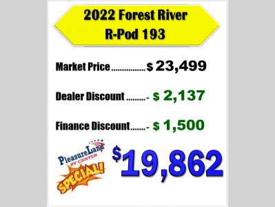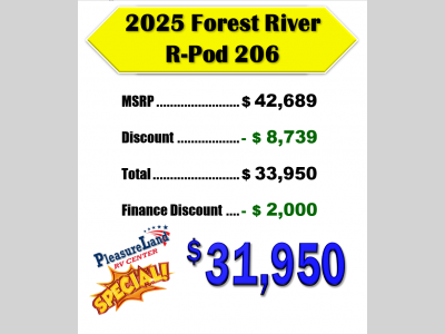 Pleasureland RV is not responsible for any misprints, typos, or errors found in our website pages. Any price listed excludes sales tax, registration tags, and delivery fees. Manufacturer pictures, specifications, and features may be used in place of actual units on our lot. Please contact us @800-862-8603 for availability as our inventory changes rapidly. All calculated payments are an estimate only and do not constitute a commitment that financing or a specific interest rate or term is available.