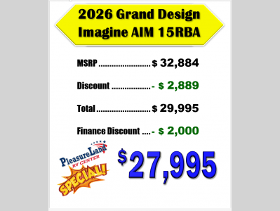 Pleasureland RV is not responsible for any misprints, typos, or errors found in our website pages. Any price listed excludes sales tax, registration tags, and delivery fees. Manufacturer pictures, specifications, and features may be used in place of actual units on our lot. Please contact us @800-862-8603 for availability as our inventory changes rapidly. All calculated payments are an estimate only and do not constitute a commitment that financing or a specific interest rate or term is available.