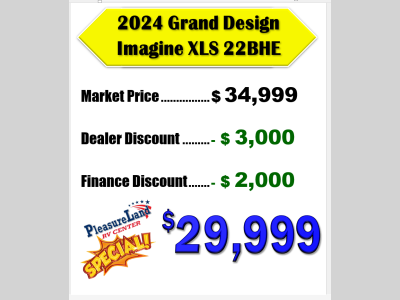 Pleasureland RV is not responsible for any misprints, typos, or errors found in our website pages. Any price listed excludes sales tax, registration tags, and delivery fees. Manufacturer pictures, specifications, and features may be used in place of actual units on our lot. Please contact us @800-862-8603 for availability as our inventory changes rapidly. All calculated payments are an estimate only and do not constitute a commitment that financing or a specific interest rate or term is available.