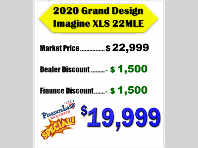 Pleasureland RV is not responsible for any misprints, typos, or errors found in our website pages. Any price listed excludes sales tax, registration tags, and delivery fees. Manufacturer pictures, specifications, and features may be used in place of actual units on our lot. Please contact us @800-862-8603 for availability as our inventory changes rapidly. All calculated payments are an estimate only and do not constitute a commitment that financing or a specific interest rate or term is available.
