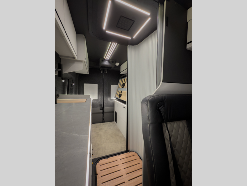 There is also a 10-speed transmission, a SYNC 4 system, adaptive cruise control, plus connected navigation and 360-degree camera the driver is sure to appreciate. You will stay powered up with a 51V Lithionics battery, 3,000W inverter, and two 180W solar panels. The interior is just as impressive with its double-pane acrylic skylight, integrated blackout shades and screen, and sleek porcelain countertop in the kitchen.