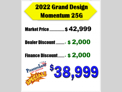Pleasureland RV is not responsible for any misprints, typos, or errors found in our website pages. Any price listed excludes sales tax, registration tags, and delivery fees. Manufacturer pictures, specifications, and features may be used in place of actual units on our lot. Please contact us @800-862-8603 for availability as our inventory changes rapidly. All calculated payments are an estimate only and do not constitute a commitment that financing or a specific interest rate or term is available.