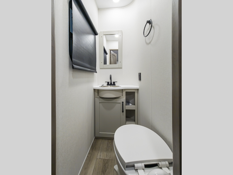 Reflection is built with the Arctic 4-Season Protection package which provides a 35K BTU high-capacity furnace, double insulated roof and front cap, a heated and underbelly with circulating heat, and 12V heat pads on the holding tanks to mention a few features that allow you to travel during any climate. The interior offers residential cabinetry, a deep-seated stainless-steel kitchen sink in the gourmet kitchen, a spacious shower with a glass door, and ductless flooring in the living area to name a few comforts.