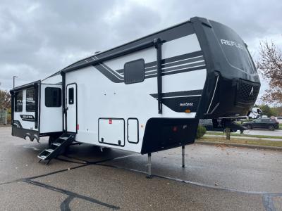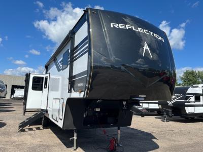 With any Reflection fifth wheel by Grand Design, you will have a solar panel for off-grid camping and a 60-amp charge controller and inverter prep, a Universal All-In-One docking station, unobstructed pass-through storage, and Goodyear Endurance tires. Each is constructed of gel coat exterior sidewalls, residential 5" truss rafters, walk-on roof decking, a fiberglass and radiant foil roof and front cap insulation plus laminated aluminum framed side walls, roof and end walls in slide rooms. Head inside to enjoy residential hardwood cabinet doors, premium Congoleum flooring, a spacious shower with a glass door, and many more comforts!