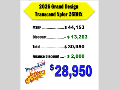 Pleasureland RV is not responsible for any misprints, typos, or errors found in our website pages. Any price listed excludes sales tax, registration tags, and delivery fees. Manufacturer pictures, specifications, and features may be used in place of actual units on our lot. Please contact us @800-862-8603 for availability as our inventory changes rapidly. All calculated payments are an estimate only and do not constitute a commitment that financing or a specific interest rate or term is available.