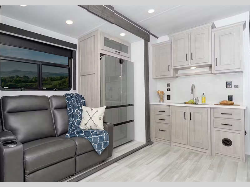 Each model has a Titan hydraulic leveling system and an iN-Command Gen 3 smart RV control system so you can spend more time enjoying your activities and less time setting up. The three Omni Chill 3/4 ton high efficiency A/C system will keep you cool even on the hottest summer days, and the 35,000 BTU furnace and in-floor heating ducts will keep you warm in the cooler months. Stay connected with the KeyTV multisource signal controller and the 4G LTE and WiFi prep!