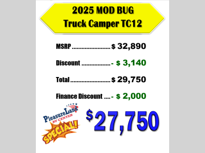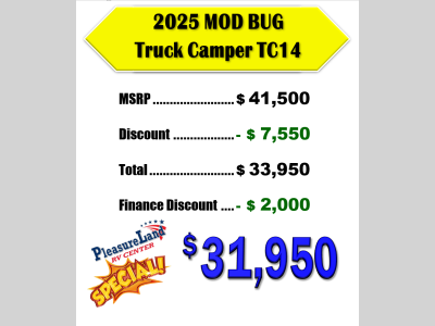 Pleasureland RV is not responsible for any misprints, typos, or errors found in our website pages. Any price listed excludes sales tax, registration tags, and delivery fees. Manufacturer pictures, specifications, and features may be used in place of actual units on our lot. Please contact us @800-862-8603 for availability as our inventory changes rapidly. All calculated payments are an estimate only and do not constitute a commitment that financing or a specific interest rate or term is available.
