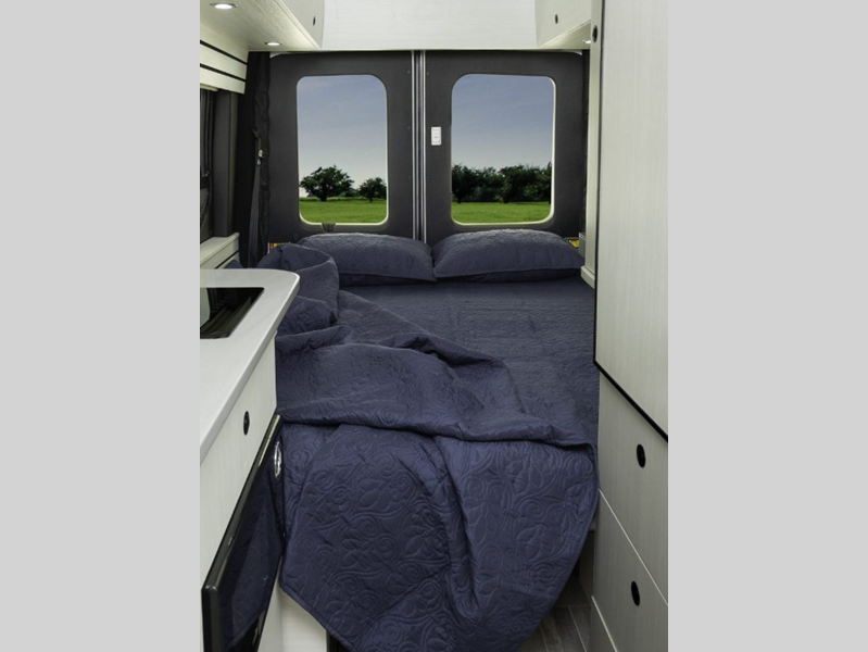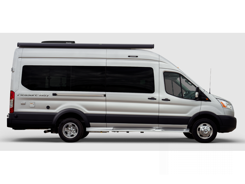 Sleeps 2 Length 19 ft 8 in Ext Width 8 ft 2 in Ext Height 10 ft Int Height 6 ft 6 in Interior Color Cashmere, Flint Exterior Color Ingot Silver Hitch Weight 3100 lbs GVWR 9500 lbs Fresh Water Capacity 25 gals Grey Water Capacity 15 gals Black Water Capacity 11 gals Furnace BTU 11500 btu Generator 2.8 KW Onan QG 2800i Fuel Type Gas Engine 3.5L EcoBoost V6 Chassis Ford Transit 350 AWD Horsepower 310 hp Fuel Capacity 25 gals Wheelbase 148 in Torque 400 ft-lb Refrigerator Type 12V Refrigerator Size 3.2 cu ft Cooktop Burners 1 Number of Awnings 1 LP Tank Capacity 12 gals Water Heater Type Truma AquaGo Comfort Plus AC BTU 11000 btu TV Info 24" Smart LED TV Awning Info Power with LED Lights Gross Combined Weight 12600 lbs Shower Type Wet/Bath Shower Electrical Service 30 amp Solar Wattage 200 watts -