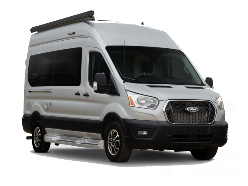 Sleeps 2 Length 21 ft 10 in Ext Width 8 ft 2 in Ext Height 10 ft Int Height 6 ft 6 in Interior Color Cashmere, Flint Exterior Color Ingot Silver Hitch Weight 2000 lbs GVWR 11000 lbs Fresh Water Capacity 28.2 gals Grey Water Capacity 15 gals Black Water Capacity 11 gals Tire Size 195/75R16C All-Season Furnace BTU 11500 btu Generator 2.8 KW Onan QG 2800i Fuel Type Gas Engine 3.5L EcoBoost V6 Chassis Ford Transit 350 AWD Horsepower 310 hp Fuel Capacity 25 gals Wheelbase 148 in Torque 400 ft-lb Refrigerator Type 12V Refrigerator Size 5.5 cu ft Cooktop Burners 1 Number of Awnings 1 LP Tank Capacity 12 gals Water Heater Type Truma AquaGo Comfort Plus AC BTU 11000 btu TV Info 24" Smart LED TV Awning Info Power with LED Lights Gross Combined Weight 13000 lbs Shower Type Wet/Bath Shower Electrical Service 30 amp