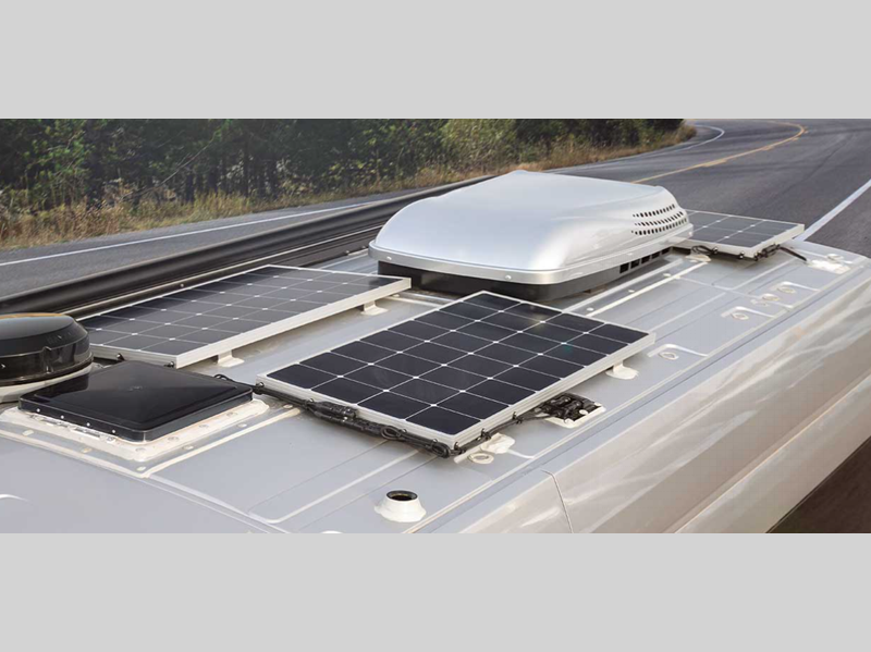 With a Ford Transit AWD van chassis and 3.5L EcoBoost® V6 engine, you can get anywhere with ease and comfort whether it be your daily commute or a cross-country road trip. The 10-inch touchscreen control panel includes centralized control of the furnace, air conditioner, and power roof vent, and an innovative automatic generator start allows you to set, start, and stop even when you're not plugged into shore power. Plus, a GO POWER!® solar integration that monitors your solar panel charge, as well as overall history of the amperage draw easily from the touchscreen.