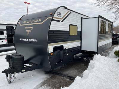 With any Avenger travel trailer by Prime Time RV, you will find innovation, a solid build, and comfort at every turn. Each model is built with Tuff Coat on the exterior metal, a fully enclosed underbelly, and a PVC roof membrane to help extend the life of your trailer. You will also find automotive name badging on the exterior, along with an exterior shower, front rail LED light strips, plus an XL padded entry grab handle to name a few conveniences. There are plenty of storage spaces inside, as well as Congoleum flooring and woven PVC marine grade slide out flooring, a designer shower surround, and seamless pressed countertops. You are sure to appreciate the onboard water filtration system, tankless water heater, plus 30K BTU furnace and 15K ducted A/C to help keep you comfortable.