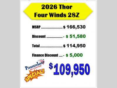 Pleasureland RV is not responsible for any misprints, typos, or errors found in our website pages. Any price listed excludes sales tax, registration tags, and delivery fees. Manufacturer pictures, specifications, and features may be used in place of actual units on our lot. Please contact us @800-862-8603 for availability as our inventory changes rapidly. All calculated payments are an estimate only and do not constitute a commitment that financing or a specific interest rate or term is available.