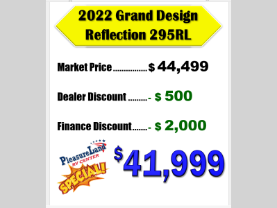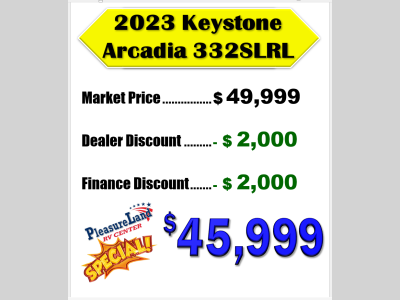 Pleasureland RV is not responsible for any misprints, typos, or errors found in our website pages. Any price listed excludes sales tax, registration tags, and delivery fees. Manufacturer pictures, specifications, and features may be used in place of actual units on our lot. Please contact us @800-862-8603 for availability as our inventory changes rapidly. All calculated payments are an estimate only and do not constitute a commitment that financing or a specific interest rate or term is available.