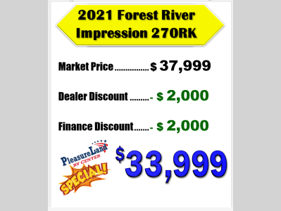 Pleasureland RV is not responsible for any misprints, typos, or errors found in our website pages. Any price listed excludes sales tax, registration tags, and delivery fees. Manufacturer pictures, specifications, and features may be used in place of actual units on our lot. Please contact us @800-862-8603 for availability as our inventory changes rapidly. All calculated payments are an estimate only and do not constitute a commitment that financing or a specific interest rate or term is available.