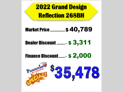 Pleasureland RV is not responsible for any misprints, typos, or errors found in our website pages. Any price listed excludes sales tax, registration tags, and delivery fees. Manufacturer pictures, specifications, and features may be used in place of actual units on our lot. Please contact us @800-862-8603 for availability as our inventory changes rapidly. All calculated payments are an estimate only and do not constitute a commitment that financing or a specific interest rate or term is available.
