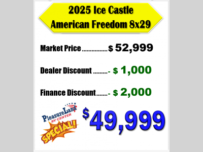 Pleasureland RV is not responsible for any misprints, typos, or errors found in our website pages. Any price listed excludes sales tax, registration tags, and delivery fees. Manufacturer pictures, specifications, and features may be used in place of actual units on our lot. Please contact us @800-862-8603 for availability as our inventory changes rapidly. All calculated payments are an estimate only and do not constitute a commitment that financing or a specific interest rate or term is available.
