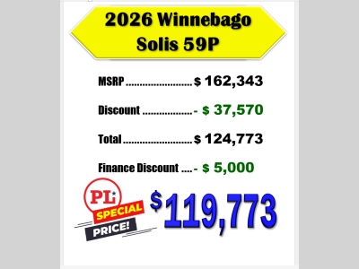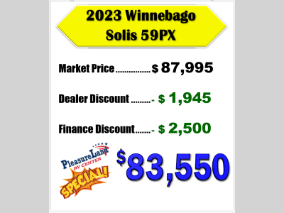 Pleasureland RV is not responsible for any misprints, typos, or errors found in our website pages. Any price listed excludes sales tax, registration tags, and delivery fees. Manufacturer pictures, specifications, and features may be used in place of actual units on our lot. Please contact us @800-862-8603 for availability as our inventory changes rapidly. All calculated payments are an estimate only and do not constitute a commitment that financing or a specific interest rate or term is available.