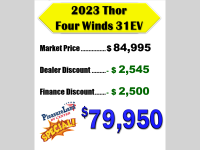 Pleasureland RV is not responsible for any misprints, typos, or errors found in our website pages. Any price listed excludes sales tax, registration tags, and delivery fees. Manufacturer pictures, specifications, and features may be used in place of actual units on our lot. Please contact us @800-862-8603 for availability as our inventory changes rapidly. All calculated payments are an estimate only and do not constitute a commitment that financing or a specific interest rate or term is available.