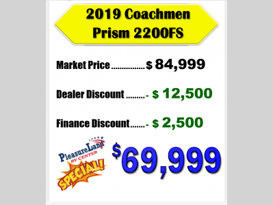 Pleasureland RV is not responsible for any misprints, typos, or errors found in our website pages. Any price listed excludes sales tax, registration tags, and delivery fees. Manufacturer pictures, specifications, and features may be used in place of actual units on our lot. Please contact us @800-862-8603 for availability as our inventory changes rapidly. All calculated payments are an estimate only and do not constitute a commitment that financing or a specific interest rate or term is available.