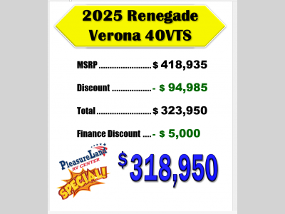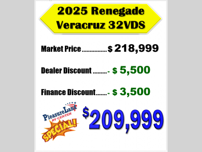 Pleasureland RV is not responsible for any misprints, typos, or errors found in our website pages. Any price listed excludes sales tax, registration tags, and delivery fees. Manufacturer pictures, specifications, and features may be used in place of actual units on our lot. Please contact us @800-862-8603 for availability as our inventory changes rapidly. All calculated payments are an estimate only and do not constitute a commitment that financing or a specific interest rate or term is available.