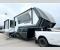 Prepare to be amazed by all the features packed into this toy hauler! There are triple slides that will provide your crew with more space, a separate garage that can sleep five with the loft included, plus a bath and a half for added convenience. The chef of your group will love the middle kitchen with a waterfall island that converts to a counter peninsula, a pull-out pantry, a GE Energy Star 19 cu. ft. refrigerator with ice and filtered water, and much more. In the combined kitchen and living space you'll find a spacious sofa with heat and massage, a fireplace, a TV, plus convenient dog bowls and shoe storage. After your toys are unloaded from the garage, you can relax on the independent dual sofas with a Fold-N-Stow table in between. You will find the front private bedroom with a king bed slide out will provide a great night's rest, and you'll also find a walk-in closet, under-bed storage, and a sliding dresser top with hidden storage for special belongings.