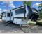 You're going to love every minute spent in this spacious fifth wheel that can sleep four. There is an inviting rear living area with a 72" tri-fold sofa and theater seating across from the televator and fireplace. The chef of your group can whip up dinner on the three burner cooktop or in the 30" residential microwave, and there is a 16 cu. ft. refrigerator that even opens when with the slide out is in. You will also enjoy the kitchen island with a farmhouse sink and roller cover, dual trash bins with a Stow N' Go paper towel holder, plus convenient dog bowls for your furry friends. You can store all your paper goods and snacks in the 84" pantry with adjustable shelving, and there is a hutch for nice dishes plus shoe storage in this model as well. Head to the front master bedroom where you'll find a queen bed with a TV, a large slide out with a wardrobe with drawers, plus a spacious bath.