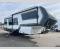You'll love every minute spent in this spacious fifth wheel that can sleep four each night. There is a front private bedroom with a queen bed and 4x under-bed drawers to keep your space tidy. Your guests can sleep on the tri-fold sofa that extends to a 54" x 70" bed at night. The theater seating sits directly across from the 50" articulating TV for movie nights, and the pantry with drawers is right next to the theater seating for quick access to snacks! The chef of your group is sure to love the kitchen with its ample counter space, 30" residential microwave, and a sliding dining table with a drawer for even more storage. The desk in the back will allow you to get some work done if needed, or you can just spend your days outdoors under the two power awnings. There is also an exterior 12V refrigerator and storage, exterior speakers and controls, and a pass-thru storage for camp gear!