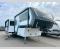 You're going to love every minute spent in this spacious fifth wheel that can sleep four. There is an inviting rear living area with a 72" tri-fold sofa and theater seating across from the televator and fireplace. The chef of your group can whip up dinner on the three burner cooktop or in the 30" residential microwave, and there is a 16 cu. ft. refrigerator that even opens when with the slide out is in. You will also enjoy the kitchen island with a farmhouse sink and roller cover, dual trash bins with a Stow N' Go paper towel holder, plus convenient dog bowls for your furry friends. You can store all your paper goods and snacks in the 84" pantry with adjustable shelving, and there is a hutch for nice dishes plus shoe storage in this model as well. Head to the front master bedroom where you'll find a queen bed with a TV, a large slide out with a wardrobe with drawers, plus a spacious bath.
