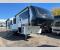 You're going to love every minute spent in this spacious fifth wheel that can sleep four. There is an inviting rear living area with a 72" tri-fold sofa and theater seating across from the televator and fireplace. The chef of your group can whip up dinner on the three burner cooktop or in the 30" residential microwave, and there is a 16 cu. ft. refrigerator that even opens when with the slide out is in. You will also enjoy the kitchen island with a farmhouse sink and roller cover, dual trash bins with a Stow N' Go paper towel holder, plus convenient dog bowls for your furry friends. You can store all your paper goods and snacks in the 84" pantry with adjustable shelving, and there is a hutch for nice dishes plus shoe storage in this model as well. Head to the front master bedroom where you'll find a queen bed with a TV, a large slide out with a wardrobe with drawers, plus a spacious bath.