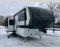 Escape to a world of comfort and luxury with this incredible fifth wheel! The living area features a plush L-sofa, five recliners, and a warm fireplace. The versatile dining table/L desk seats up to four people, making it perfect for meals, work, or play. Ample shoe storage and a convenient spot for pet bowls enhance comfort and practicality. The kitchen offers stunning solid surface countertops, dishwasher prep, a residential microwave, and a three-burner cooktop. The expansive pantry with pull-out drawers provides ample storage for your favorite ingredients and cooking essentials. The full bathroom is a serene oasis, featuring a linen closet for added storage and convenience. The front bedroom is a peaceful sanctuary, featuring a spacious king bed, shelves, and a sliding dresser top with hidden storage. The generous wardrobe and shoe rack provide ample storage for your clothes and shoes.