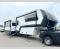 You're going to love every minute spent in this triple slide out fifth wheel! Once you arrive at the campground, you can put out the two side awnings, set up the rear patio and awning, then make lunch on the outdoor kitchen! There is also an outdoor TV here, a bar sink, and a refrigerator to keep drinks close by! Inside, the chef will find everything they need if the weather isn't cooperating, including a 30" residential microwave, 16 cu. ft. refrigerator, plus a large kitchen island, complete with dual trash bins and dog bowls at the foot. Your crew can get cozy on the tri-fold sofa that extends to a 54" x 70" bed for guests, and there is theater seating across from the televator and fireplace for easy viewing! You will find the front private bedroom ultra accommodating with its king bed slide out, sliding dresser top with hidden storage, your own TV, and a front wardrobe with shelves and a shoe rack. There is even washer and dryer prep if you want the option to make laundry day that much easier!