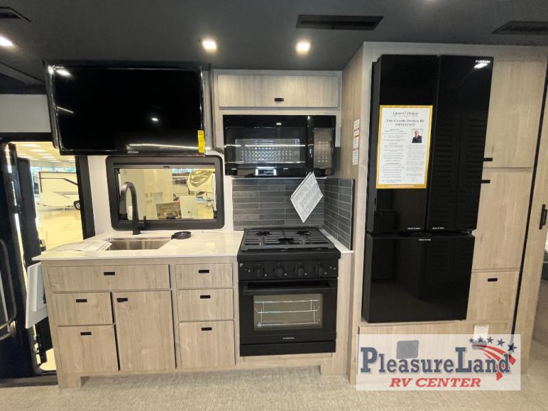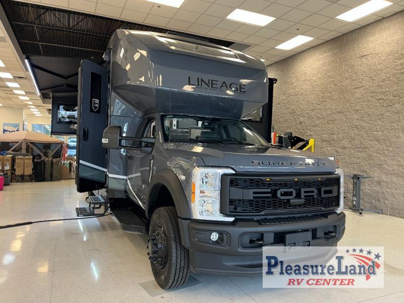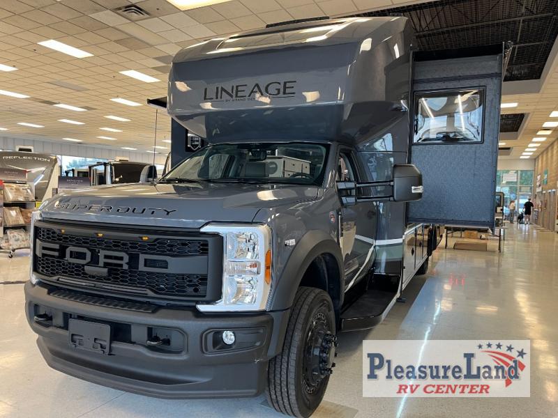 The capable Lineage Series F Super C diesel motorhome by Grand Design is your ticket to adventure! There is a Fox Factory Suspension Package for optimal handling, and you can go off the beaten path with the 6.7L power stroke diesel 4x4 chassis. This coach sits on the Ford F-600 super duty platform, and features a MorRyde tubular steel frame for added strength and durability. You'll find many at-home comforts inside, including comfortable seating and sleeping spaces, full bath and kitchen amenities, and plenty of storage for your personal belongings and camp gear!