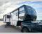 There is a whole lot to love about this fifth wheel! The front private bedroom has a queen bed to lay your head on at night, a slide with drawers and a linen closet, and even an entrance into the dual entry bathroom. The second private bedroom has a 54" x 74" top bed above a queen bed, a slide with a closet and drawers, and its very own half bathroom. The chef will have an easy time preparing delicious home cooked meals with the kitchen island, plus there is an outside kitchen complete with a 4.1 cu. ft. refrigerator to enjoy a cold beverage while you grill on the griddle. Enjoy a relaxing evening indoors either playing games at the booth dinette or on the theater seating across from the entertainment center with a fireplace and 40" TV. You could even switch out the seating for an optional tri-fold sofa or the dinette for an optional swivel dinette!