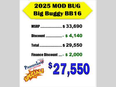 Pleasureland RV is not responsible for any misprints, typos, or errors found in our website pages. Any price listed excludes sales tax, registration tags, and delivery fees. Manufacturer pictures, specifications, and features may be used in place of actual units on our lot. Please contact us @800-862-8603 for availability as our inventory changes rapidly. All calculated payments are an estimate only and do not constitute a commitment that financing or a specific interest rate or term is available.