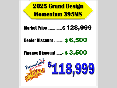 Pleasureland RV is not responsible for any misprints, typos, or errors found in our website pages. Any price listed excludes sales tax, registration tags, and delivery fees. Manufacturer pictures, specifications, and features may be used in place of actual units on our lot. Please contact us @800-862-8603 for availability as our inventory changes rapidly. All calculated payments are an estimate only and do not constitute a commitment that financing or a specific interest rate or term is available.