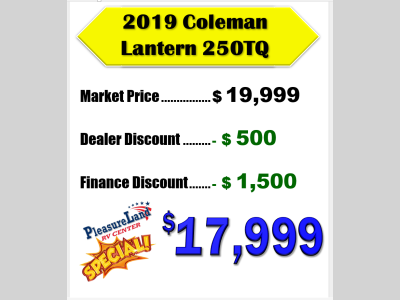 Pleasureland RV is not responsible for any misprints, typos, or errors found in our website pages. Any price listed excludes sales tax, registration tags, and delivery fees. Manufacturer pictures, specifications, and features may be used in place of actual units on our lot. Please contact us @800-862-8603 for availability as our inventory changes rapidly. All calculated payments are an estimate only and do not constitute a commitment that financing or a specific interest rate or term is available.