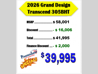 Pleasureland RV is not responsible for any misprints, typos, or errors found in our website pages. Any price listed excludes sales tax, registration tags, and delivery fees. Manufacturer pictures, specifications, and features may be used in place of actual units on our lot. Please contact us @800-862-8603 for availability as our inventory changes rapidly. All calculated payments are an estimate only and do not constitute a commitment that financing or a specific interest rate or term is available.