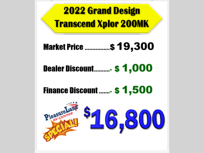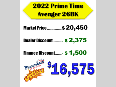 Pleasureland RV is not responsible for any misprints, typos, or errors found in our website pages. Any price listed excludes sales tax, registration tags, and delivery fees. Manufacturer pictures, specifications, and features may be used in place of actual units on our lot. Please contact us @800-862-8603 for availability as our inventory changes rapidly. All calculated payments are an estimate only and do not constitute a commitment that financing or a specific interest rate or term is available.