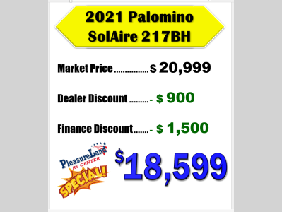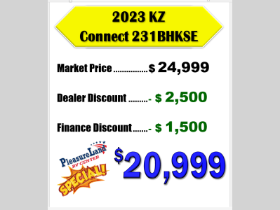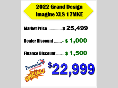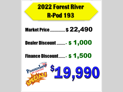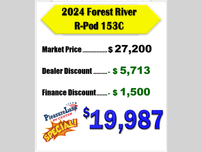 Pleasureland RV is not responsible for any misprints, typos, or errors found in our website pages. Any price listed excludes sales tax, registration tags, and delivery fees. Manufacturer pictures, specifications, and features may be used in place of actual units on our lot. Please contact us @800-862-8603 for availability as our inventory changes rapidly. All calculated payments are an estimate only and do not constitute a commitment that financing or a specific interest rate or term is available.