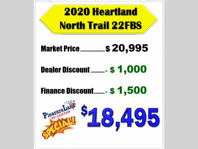 Pleasureland RV is not responsible for any misprints, typos, or errors found in our website pages. Any price listed excludes sales tax, registration tags, and delivery fees. Manufacturer pictures, specifications, and features may be used in place of actual units on our lot. Please contact us @800-862-8603 for availability as our inventory changes rapidly. All calculated payments are an estimate only and do not constitute a commitment that financing or a specific interest rate or term is available.