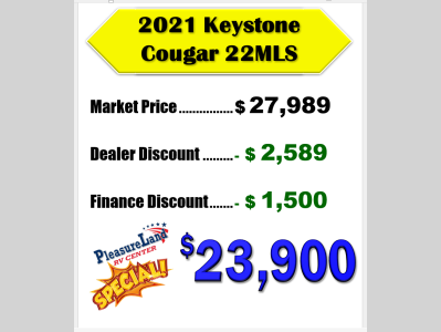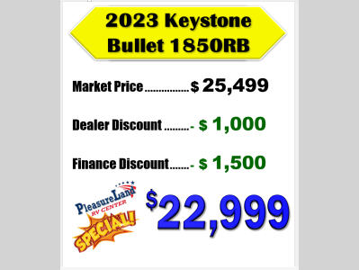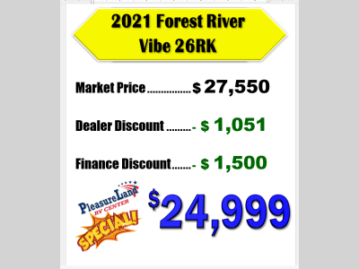 Pleasureland RV is not responsible for any misprints, typos, or errors found in our website pages. Any price listed excludes sales tax, registration tags, and delivery fees. Manufacturer pictures, specifications, and features may be used in place of actual units on our lot. Please contact us @800-862-8603 for availability as our inventory changes rapidly. All calculated payments are an estimate only and do not constitute a commitment that financing or a specific interest rate or term is available.