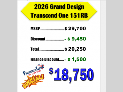 Pleasureland RV is not responsible for any misprints, typos, or errors found in our website pages. Any price listed excludes sales tax, registration tags, and delivery fees. Manufacturer pictures, specifications, and features may be used in place of actual units on our lot. Please contact us @800-862-8603 for availability as our inventory changes rapidly. All calculated payments are an estimate only and do not constitute a commitment that financing or a specific interest rate or term is available.