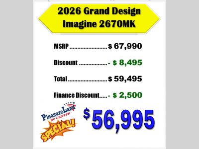 Pleasureland RV is not responsible for any misprints, typos, or errors found in our website pages. Any price listed excludes sales tax, registration tags, and delivery fees. Manufacturer pictures, specifications, and features may be used in place of actual units on our lot. Please contact us @800-862-8603 for availability as our inventory changes rapidly. All calculated payments are an estimate only and do not constitute a commitment that financing or a specific interest rate or term is available.