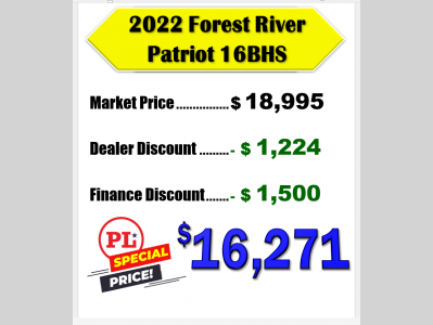 Pleasureland RV is not responsible for any misprints, typos, or errors found in our website pages. Any price listed excludes sales tax, registration tags, and delivery fees. Manufacturer pictures, specifications, and features may be used in place of actual units on our lot. Please contact us @800-862-8603 for availability as our inventory changes rapidly. All calculated payments are an estimate only and do not constitute a commitment that financing or a specific interest rate or term is available.