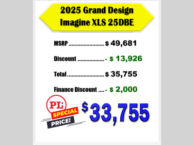 Pleasureland RV is not responsible for any misprints, typos, or errors found in our website pages. Any price listed excludes sales tax, registration tags, and delivery fees. Manufacturer pictures, specifications, and features may be used in place of actual units on our lot. Please contact us @800-862-8603 for availability as our inventory changes rapidly. All calculated payments are an estimate only and do not constitute a commitment that financing or a specific interest rate or term is available.