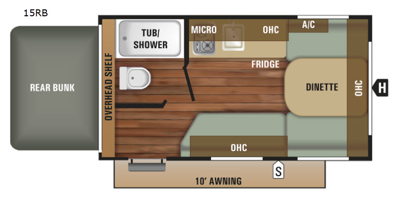 Black Water Capacity | 9 gals | Available Beds | Tent End Bunk |